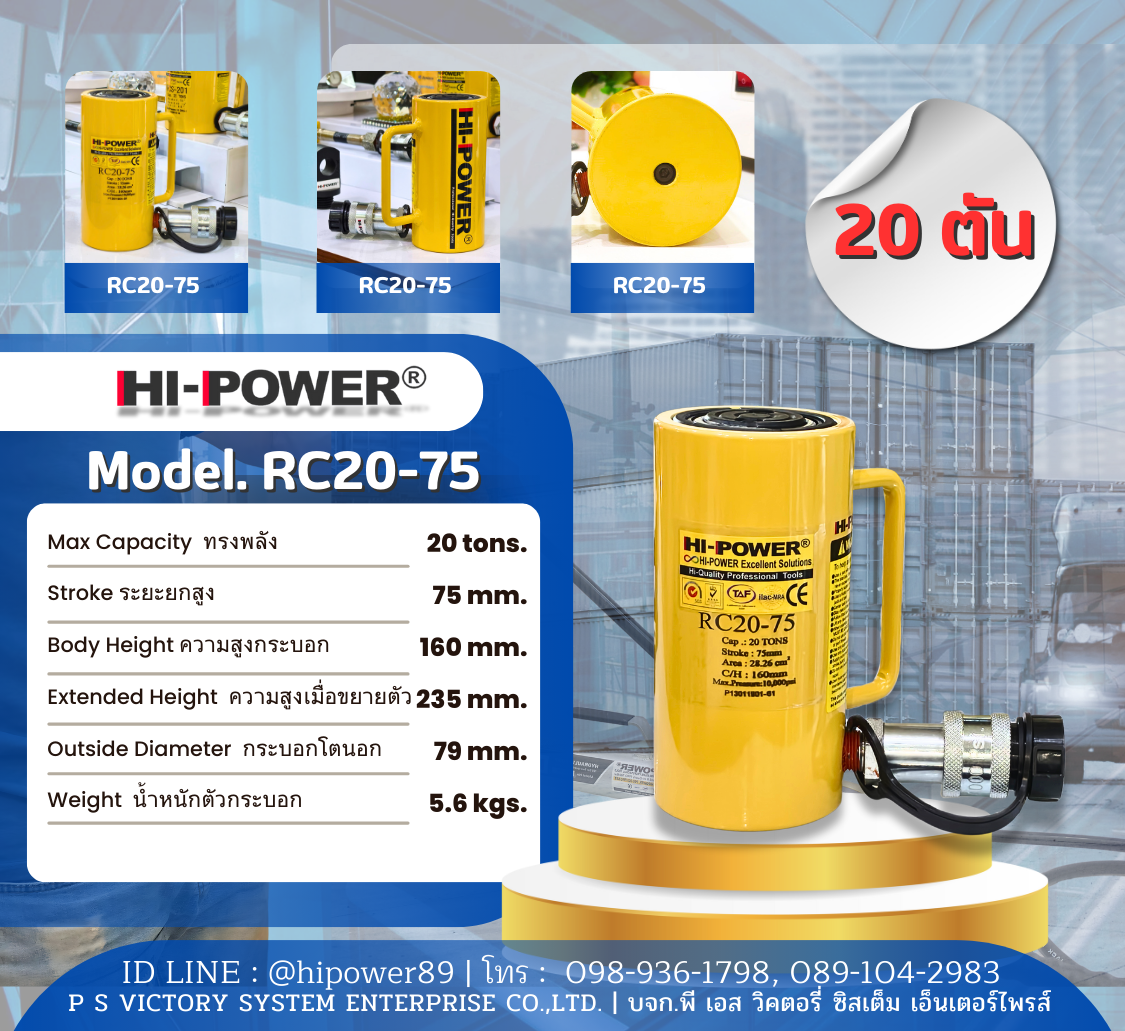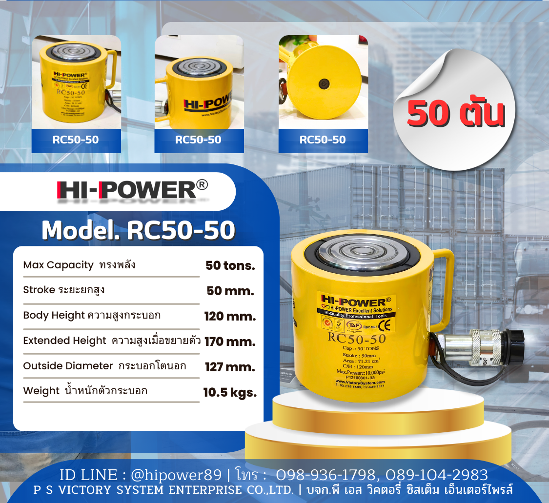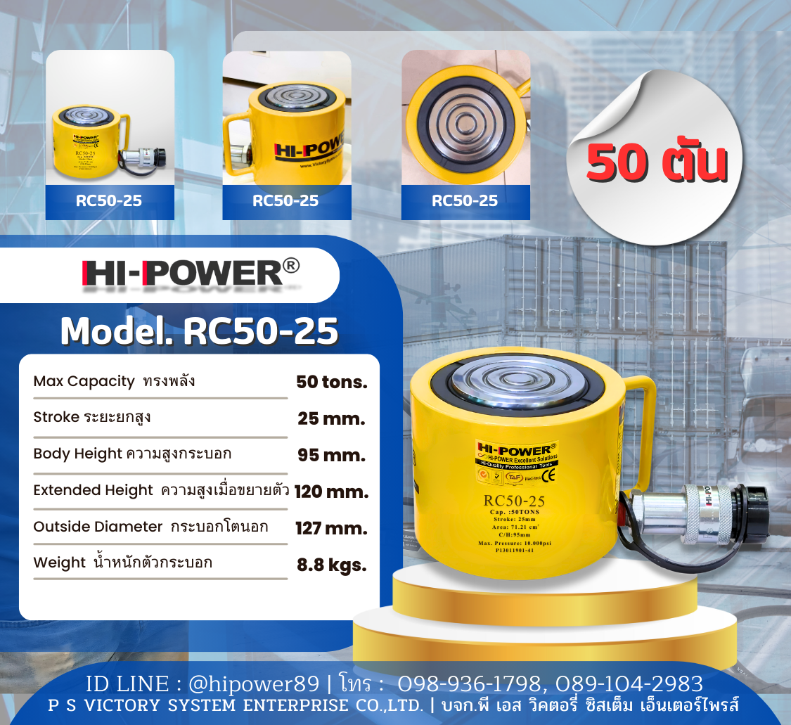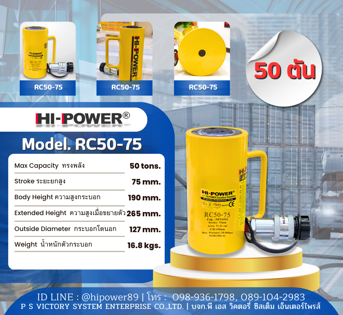 HI-POWER RC50-50ไฮ-เพาเวอร์ทรงพลัง 50ตันMax. 50Tons, Stroke 50 mm